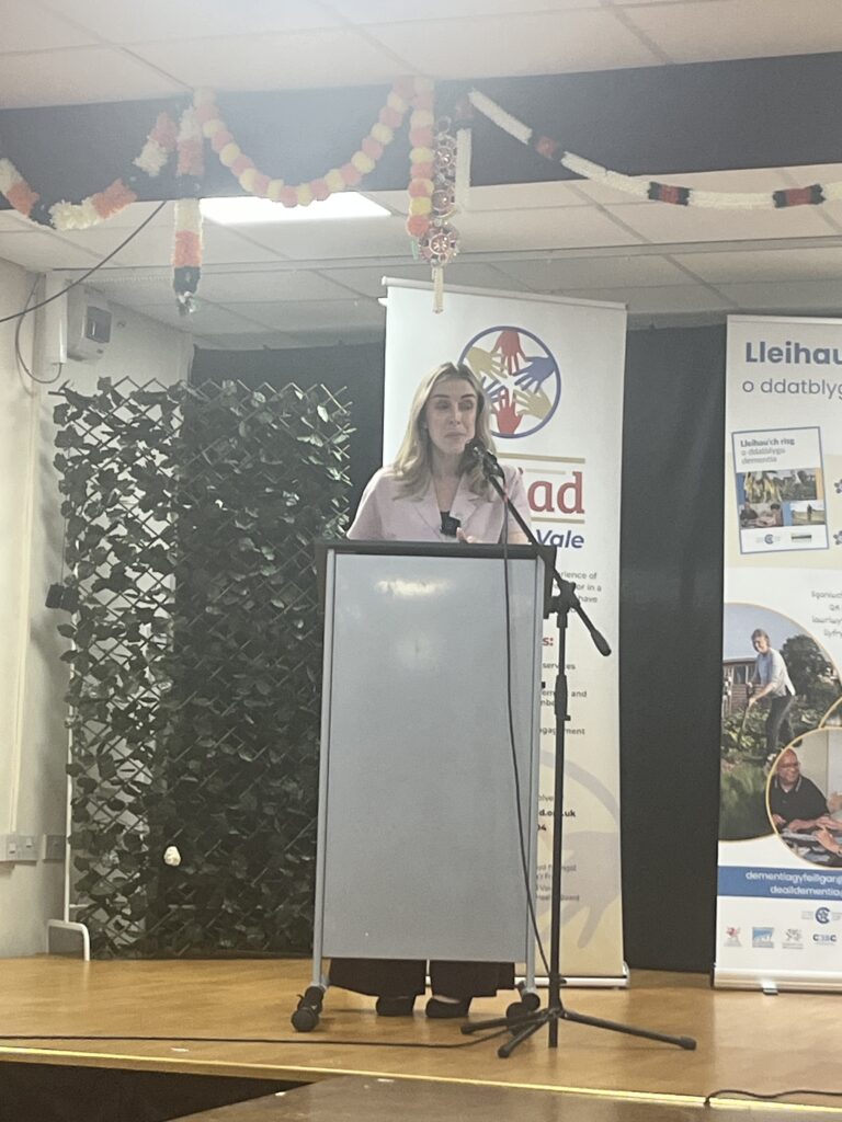 Un o elfennau mwyaf cofiadwy’r diwrnod oedd y straeon personol. Rhannodd aelodau’r Clwb Chai brofiadau pwerus am sut roedd stigma, unigrwydd a rhwystrau diwylliannol wedi siapio eu profiadau o ddementia a gofalu am anwyliaid. Tynnodd eu hagoredrwydd sylw at yr heriau ond hefyd at y gobaith sy’n dod pan fydd cymunedau’n teimlo eu bod yn cael eu clywed, eu deall a’u cefnogi.
