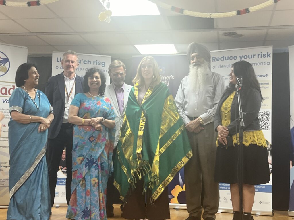 Roedd presenoldeb y Gweinidog yn cario arwyddocâd arbennig. Wrth i Lywodraeth Cymru ddechrau datblygu’r Cynllun Gweithredu Dementia newydd i Gymru, roedd ei hymweliad yn gyfle i ddysgu’n uniongyrchol gan y bobl, y partneriaid a’r cymunedau y bydd eu profiadau’n helpu i lunio polisi’r dyfodol. Wrth siarad â’r rhai a oedd yn bresennol, cydnabu hi bwysigrwydd adeiladu ar y dysgu a’r arferion da a ddatblygwyd drwy Opening Doors, er mwyn llywio dull mwy cynhwysol ac effeithiol o ofal dementia ledled Cymru. Cafodd ei chyffwrdd yn arbennig gan fendith Hindŵ bwerus, a oedd yn adleisio’r teimlad o groeso, parch ac undod a deimlwyd trwy’r digwyddiad cyfan.