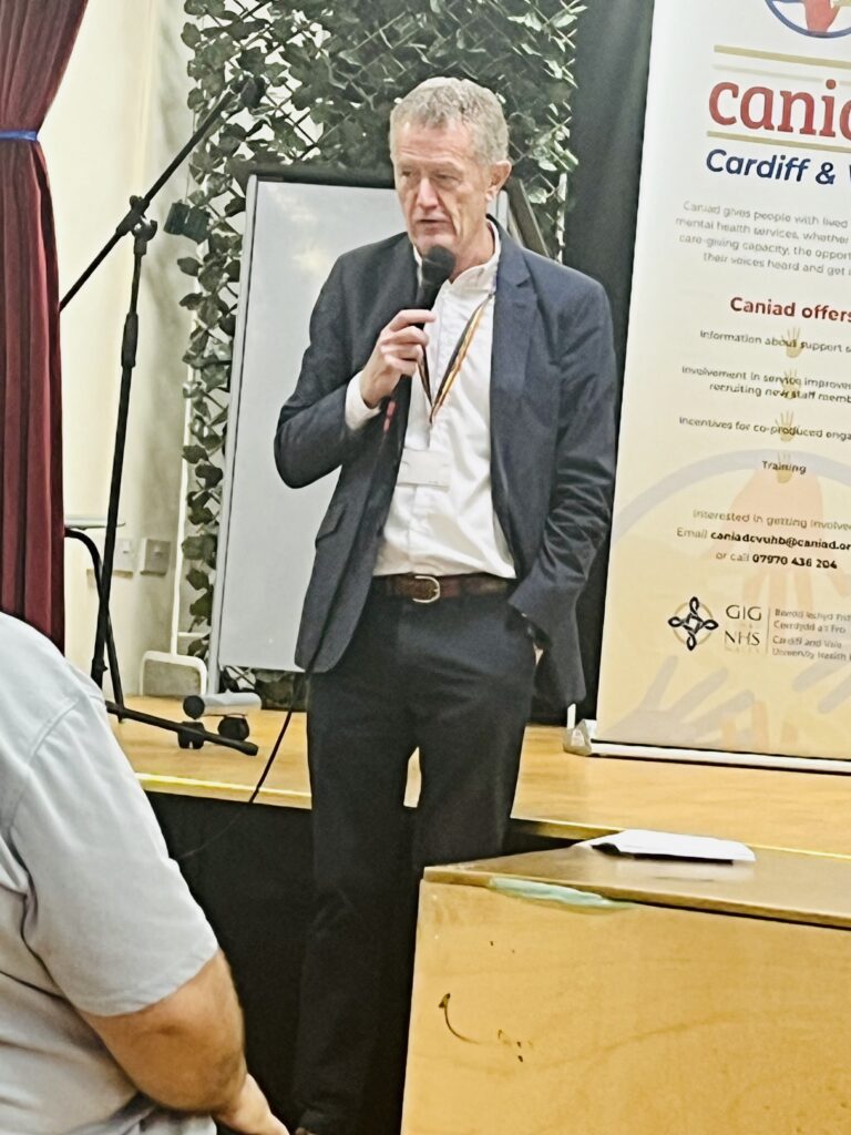 Cafodd y digwyddiad yr anrhydedd o groesawu Sarah Murphy AS, y Gweinidog dros Iechyd Meddwl a Llesiant. Yn ei araith groeso gynnes, pwysleisiodd Yr Athro Ceri Phillips, Dirprwy Gadeirydd Bwrdd Iechyd Prifysgol Caerdydd a’r Fro, sut mae Agor Drysau yn enghraifft o’r gwerthoedd o atal, cynhwysiant a phartneriaeth.