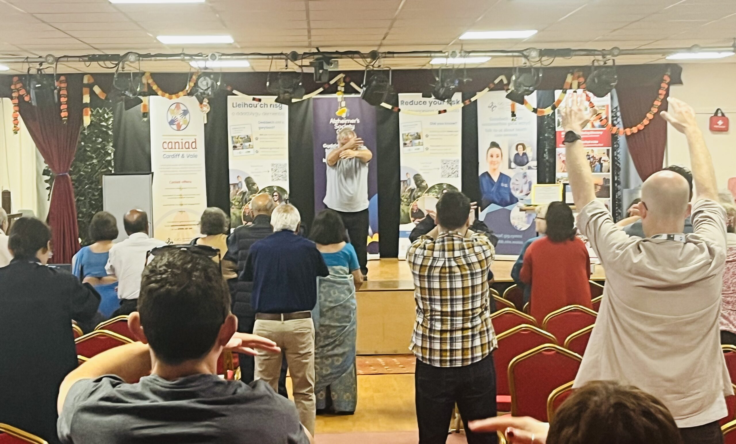Roedd stondinau partneriaid cymunedol, gan gynnwys Bwrdd Iechyd Prifysgol Caerdydd a’r Fro, Awdurdodau Lleol a phartneriaid y trydydd sector, yn llenwi’r neuadd, gan gynnig gwybodaeth, cyngor a chyfleoedd i gysylltu — o wasanaethau cymorth dementia i fentrau iechyd a lles lleol. Dangosodd y stondinau hyn y rhwydwaith cryf o sefydliadau sy’n gweithio gyda’i gilydd i wneud Caerdydd a Bro Morgannwg yn lefydd lle gall pawb ffynnu.