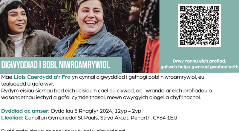 Digwyddiad Drws Agored Llais Caerdydd a’r Fro: Ymgysylltu â phobl niwroamrywiol, teuluoedd a gofalwyr.